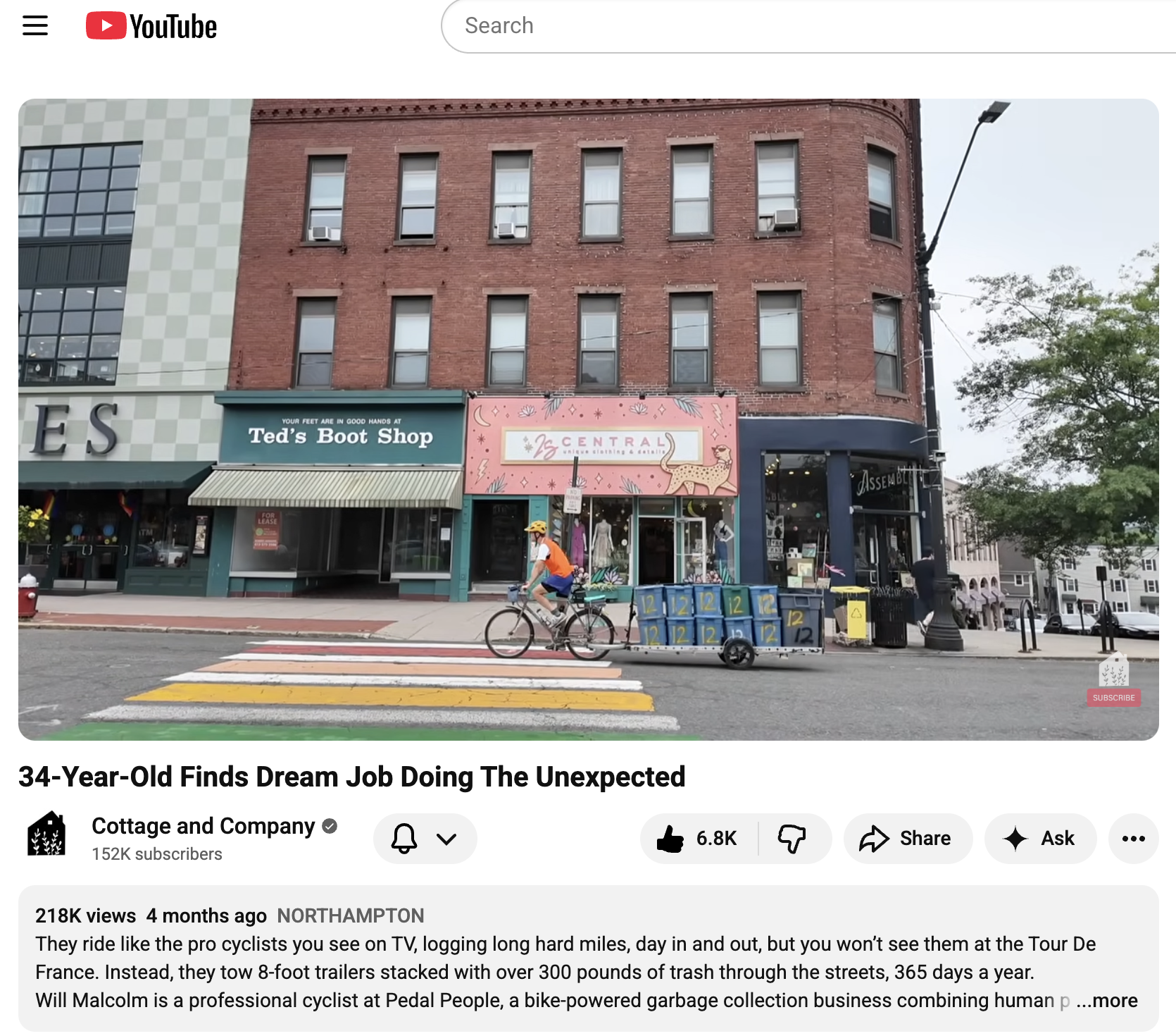 Will, one of our worker owners, was filmed on a regular trash, recycling, and compost pickup route through the streets of Northampton and now said film has been viewed over 200,000 times!